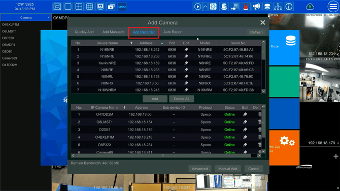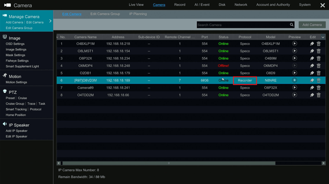 - From here, press OK and the camera should appear on the camera list with the protocol as "recorder"