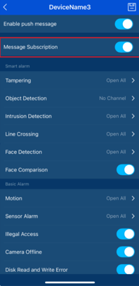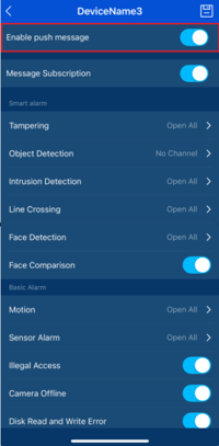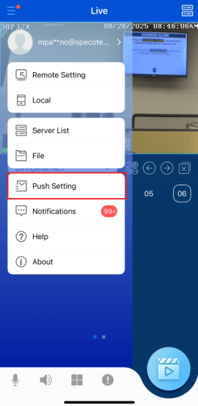 Note: If the push option is already disabled in the recorder's settings, the option will not be available on the app.