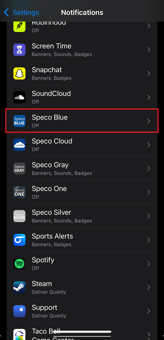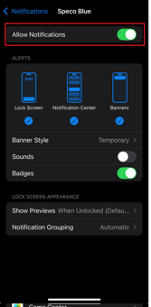 - Navigate to the Settings App > Notifications > Speco Blue > Allow Notifications