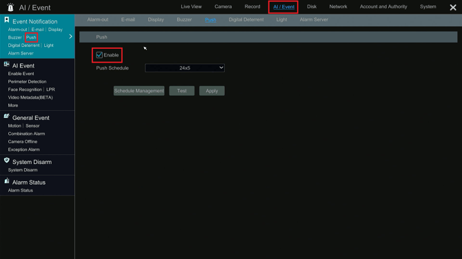 - Uncheck the checkbox to disable ALL push notifications from this recorder.