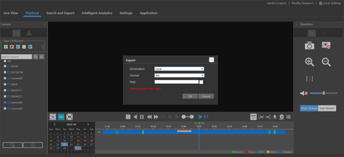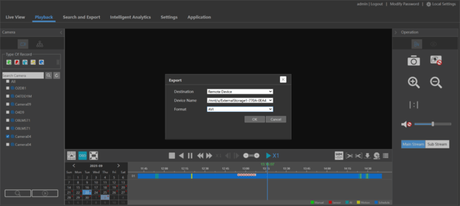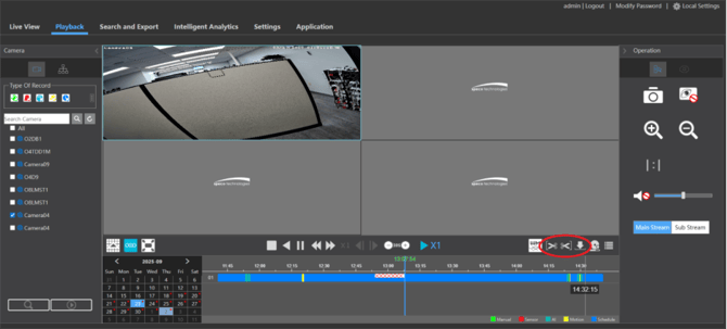 - Select the cameras you would like to export a clip from