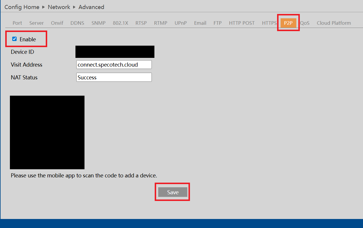 Once enabled, the device ID, visit address,NAT status and QR code will all populate