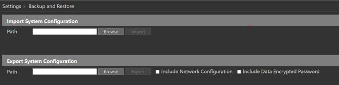 - From here an export can be done to save a configuration file whereas an import would be restoring it.
