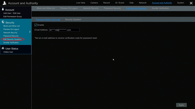 How to set up Password Reset via E-mail on Speco Blue recorders