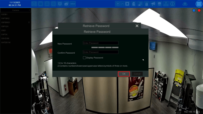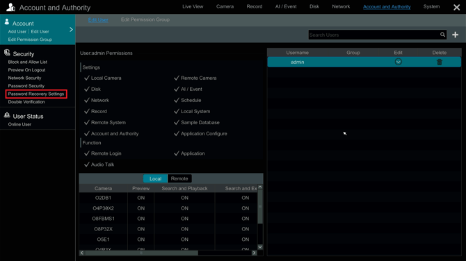 - On the NRX series recorder, select Password Recovery Settings