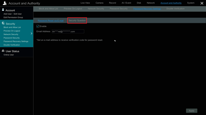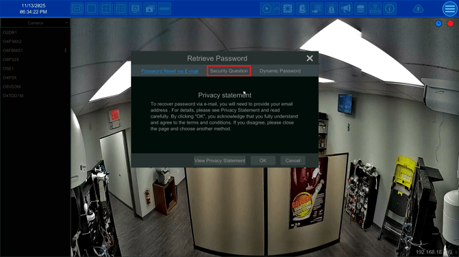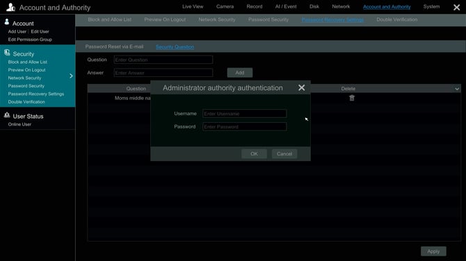 Setting up Security Questions is a great way to ensure you can always access your recorder in case you forget your original password.