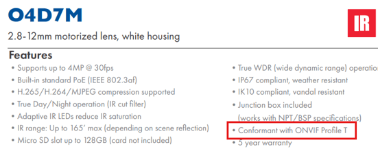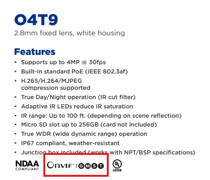 - It will either be listed in text or with the ONVIF logo followed by the profiles it supports circled.