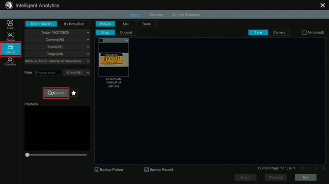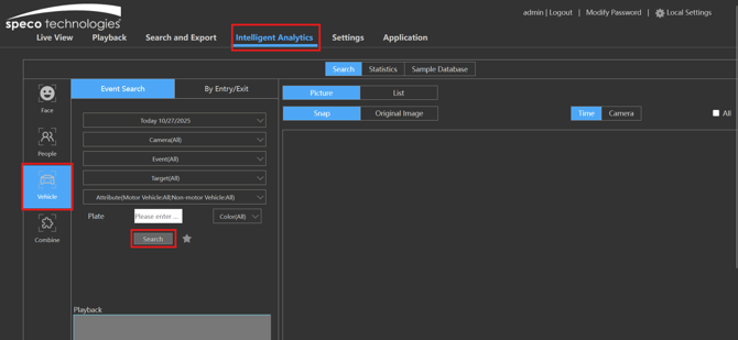 - Click on the vehicle option, specify a camera and date/time then click search.