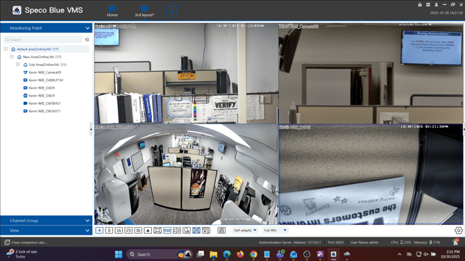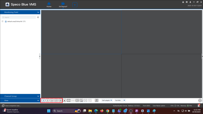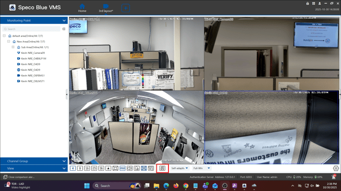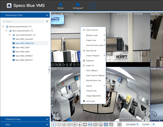 - To create a custom view, drag and drop the areas or individual cameras onto the screen