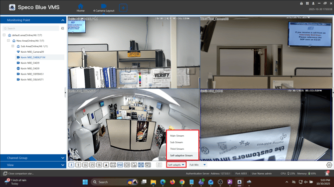 - There are multiple viewing modes to ensure a fluent stream. By default, and recommended is “Self-Adaptive View”.